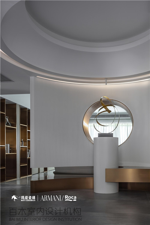 空间设计的每一隅,都体现出极致的细节美感,光晕潜藏、倾泻在鎏金般的地砖上,渐变闪耀,简约高级,圆润、有机型态的弧形拱门瞬间提升空间的温暖和包容力。让徜徉其间的每一步都那么具有仪式感。