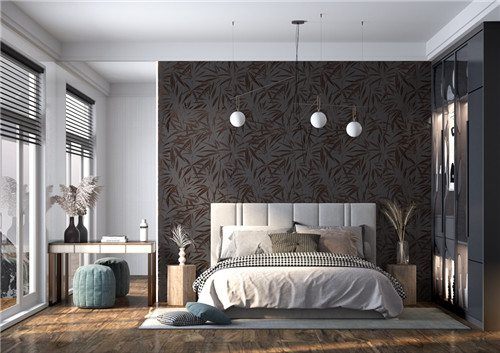 如果说客厅电视背景墙是个人审美的体现,那卧室背景墙则可以透露情趣。卧室的背景墙可以选择一些图案较为简洁或者能营造氛围的岩板,整体与卧室效果做搭配,营造出舒适宁静的氛围。