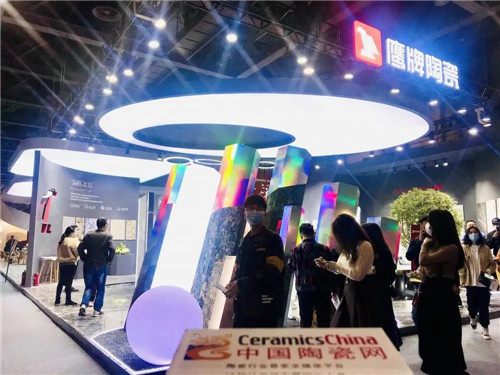 在设计周开幕的前一天,某参展商向中陶君透露道:“鹰牌陶瓷那只大型的巨鹰装置今年‘不参展’了。”这份惊讶地感叹,只因鹰牌陶瓷vi形象足够醒目。即便是没有了大型的软装装置在鹰牌陶瓷展位上,中陶君却发现,在不同角度观赏鹰牌陶瓷展位,都有不同的视觉感受,而品牌要展示的产品也似乎在梯形、弧形、圆形等灵活多变的组合展示间,道出了不同的运用设计语言。这或许,是鹰牌陶瓷对展示空间作重置的解释。