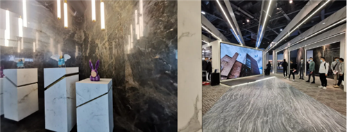 其展位以兼具“直面”与“曲面”的岩板组合出无穷的空间表达语汇,于“曲直”之间重构未来设计与美好生活;以曲直面设计对未来建筑空间设计材料美学致敬,更着重强调产品本身几何面的物理特性和场所精神,与当代建筑及室内空间曲直面组合的设计趋势并肩前行。