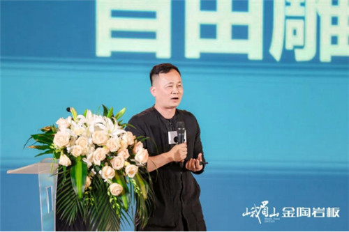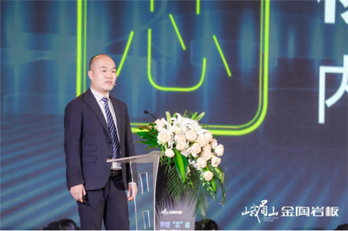 佛山市陶瓷行业协会秘书长、华南理工大学教授尹虹博士讲话,表示峨眉山金陶“2.5mm芯薄”岩板的全球发布和佛山总部4000㎡全岩板展厅的成功落成,标志着我们岩板作为一种新型材料朝着更薄、更轻、更节能环保的方向发展,也标志着岩板产品跨界新时代的到来。