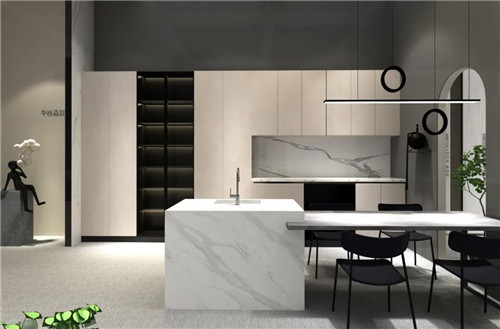 回顾上一届广州建博会——2020年疫后家居建装行业举办的首个大型展会,不仅有十余家岩板生产企业强势登陆大定制馆,而且在定制家具企业展出的橱柜、衣柜、中岛台、餐桌、茶几等产品上随处可见岩板的身影。
