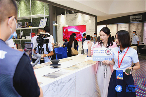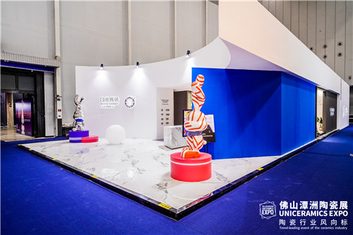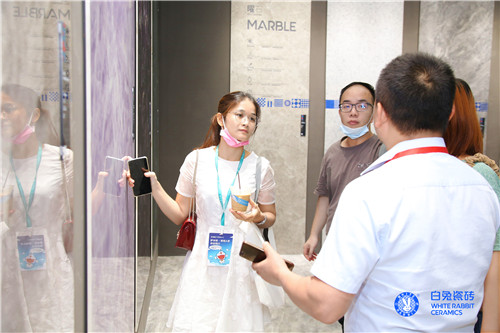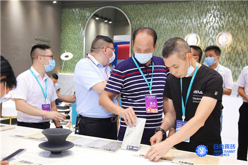 从而实现大砖做模块,营造简约、大气、灵动的空间效果;小砖做肌理,营造精致、立体、丰富的艺术美感,为白兔瓷砖展位注入崭新的空间灵感和场景体验,呈现出空间艺术设计的更多可能,现场吸引众多观众驻足拍照和咨询。