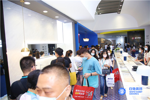 ▲白兔瓷砖展位内外人头攒动,客如云集。