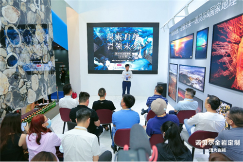 作为中国岩板行业的先行者,此次诺贝尔通过将自然风貌与产品肌理相结合,以「探索自然,岩领未来」为主题,不断拓展产品边界。同时结合奇妙岩洞展厅、沙龙论坛、现场展位分享的「展示+对话」多维形式,全方位引领当代美好人居新风尚。