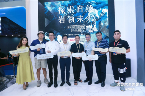 在之后的「自然人居,岩领未来」沙龙对话中,与会嘉宾们一起探讨在新岩板风潮下自然人居新命题。中国建筑卫生陶瓷协会高级顾问,佛山市陶瓷行业协会秘书长,华南理工大学教授尹虹先生强调近些年来随着岩板行业迎来火爆的同时也存在着危机,对终端产品的重视度不高导致服务定制跟不上,岩板行业的创新与应用需提上议程。湛江设计力量协会会长吴文粒先生则从设计师角度阐述了岩板从铺贴产品、应用产品再到功能产品带来的无限想象,诺贝尔在产品研发的努力,让我们不再是自然的搬运工。国家地理特邀摄影师张夏青先生则从摄影的角度诠释了见证图像到产品落地后的欣喜心路历程。最后,展览主创设计师陈万勇先生以展厅设计收尾,讲述了全岩定制下自然人居空间的美学灵感。