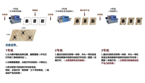1.新景泰代表:介绍大板数码喷釉线(三台喷墨机+三台往复柜)。