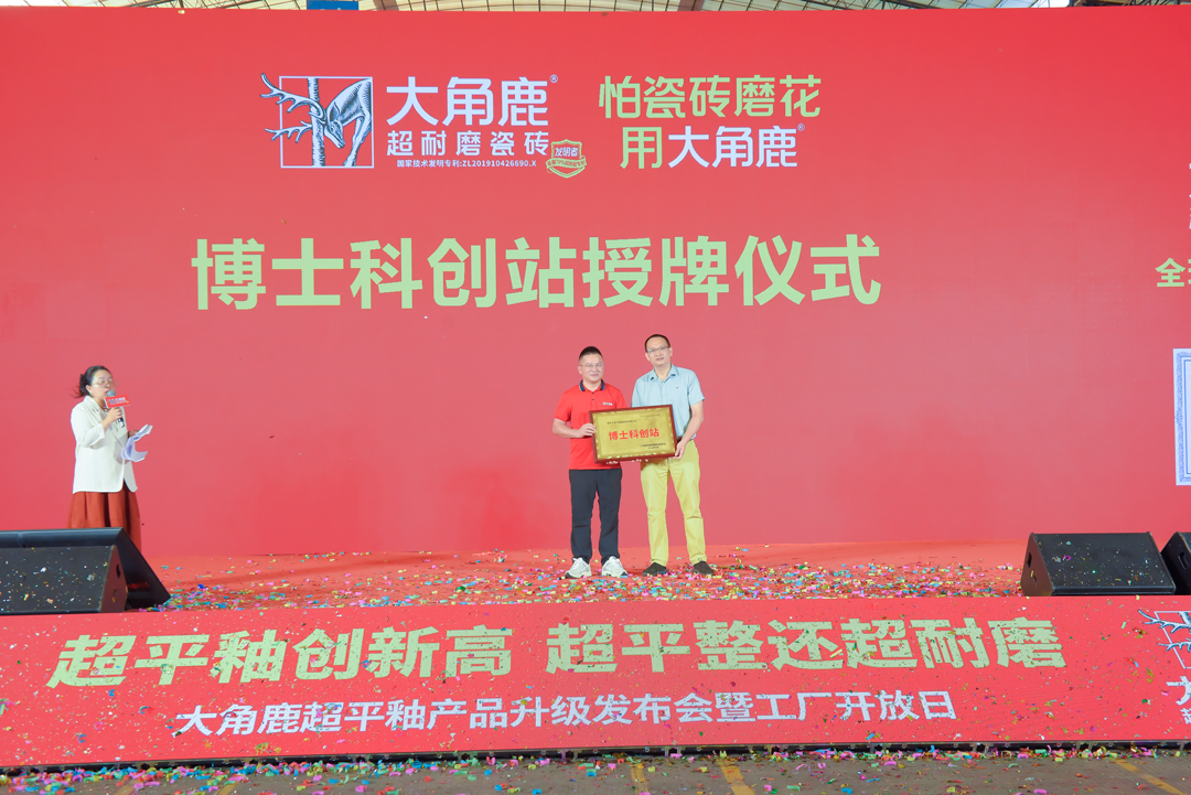 在技术突破的同时,大角鹿加速科研体系纵深布局。发布会上,大角鹿与西安交通大学广东研究院揭牌成立“5A瓷砖AI智能研发检测产学研创新中心”,并举行博士科创站授牌仪式,标志着大角鹿在智能检测、科研协同、技术创新等方向的全线升级,为品牌夯实技术护城河、输出行业标准构筑坚实的科研底座。