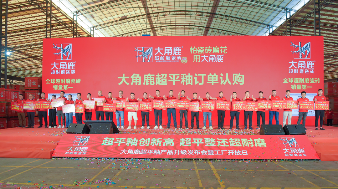 兼具 “超平整” 与 “超耐磨” 硬核实力的产品,不仅是消费者的优选,更是经销商开拓市场的 “硬核利器”!活动现场,27位大角鹿经销商代表当场签订首批认购订单,订单金额高达6000多万元。首发即热销,印证了市场对大角鹿超平釉新品的高度认可,也预示着“超平釉”瓷砖即将迎来全面爆发。