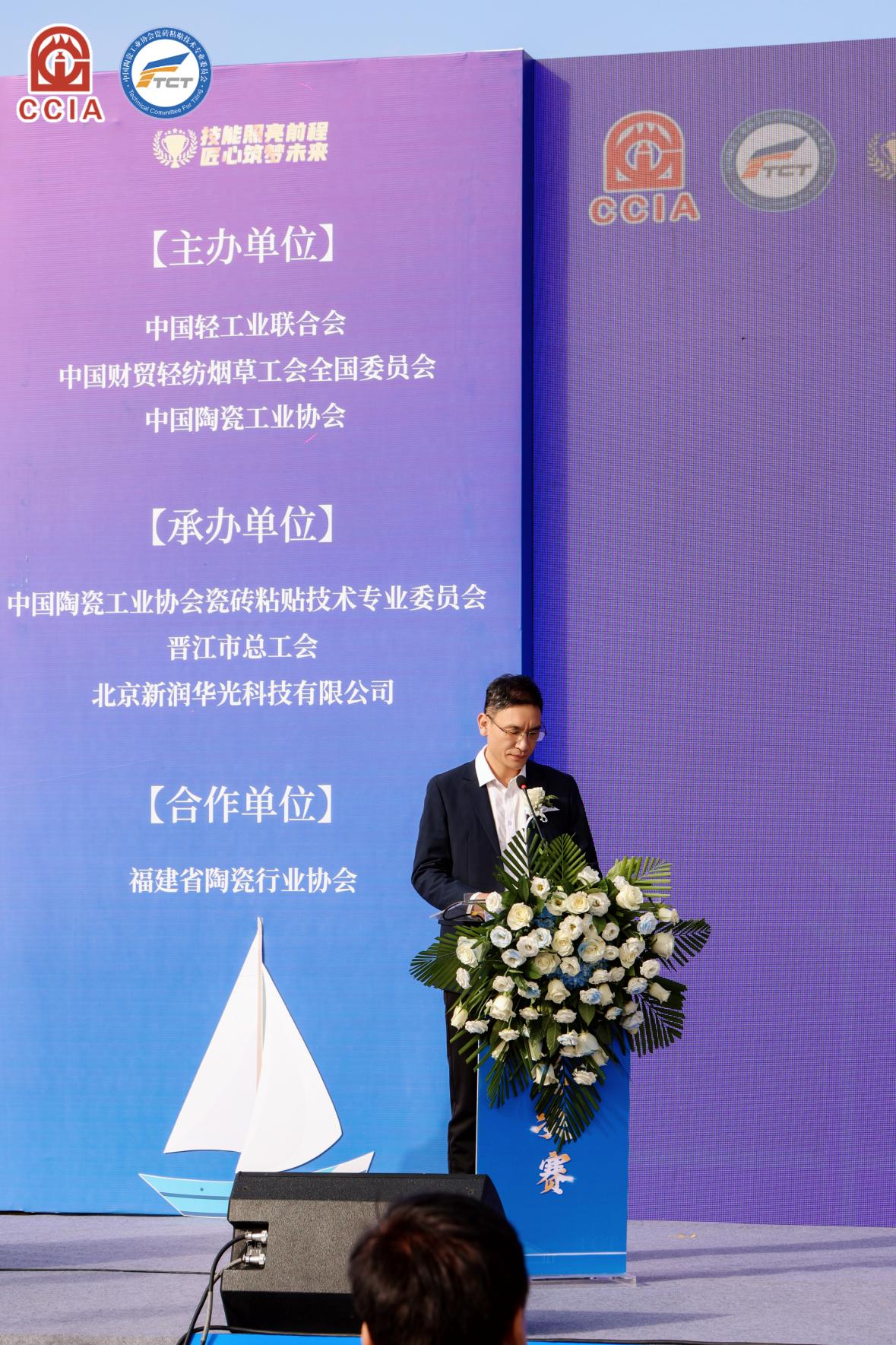 作为全国轻工业职业技能领域的重要赛事,本次活动由中国轻工业联合会、中国财贸轻纺烟草工会全国委员会、中国陶瓷工业协会联合主办,中国陶瓷工业协会瓷砖粘贴技术专业委员会(简称TCT)、晋江市总工会承办,由中国陶瓷工业协会瓷砖粘贴技术专业委员会会长赵振林主持。