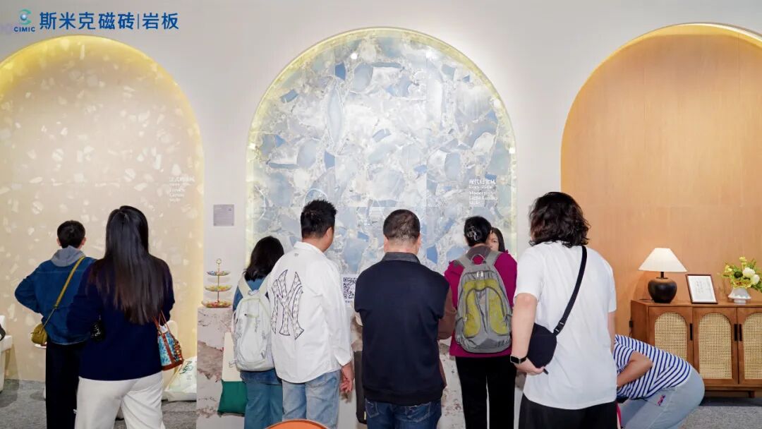 值得一提的是,展馆内外建筑墙面大面积应用的“莱姆石”,与斯米克三十多年来持续迭代的匠心之作“玻化石”两大经典产品同样备受观众青睐。