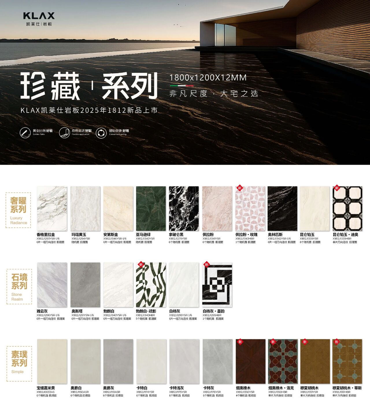 今年7月,凯莱仕岩板前瞻性创新发布1800×1200×12mm黄金尺寸珍藏系列岩板,主动升级与精准深耕高端市场。该规格完美平衡了空间大气连贯性需求与落地的可行性,成为高端客户追求效果与实用兼具的最优解,实现“花更少钱买更好品质”。