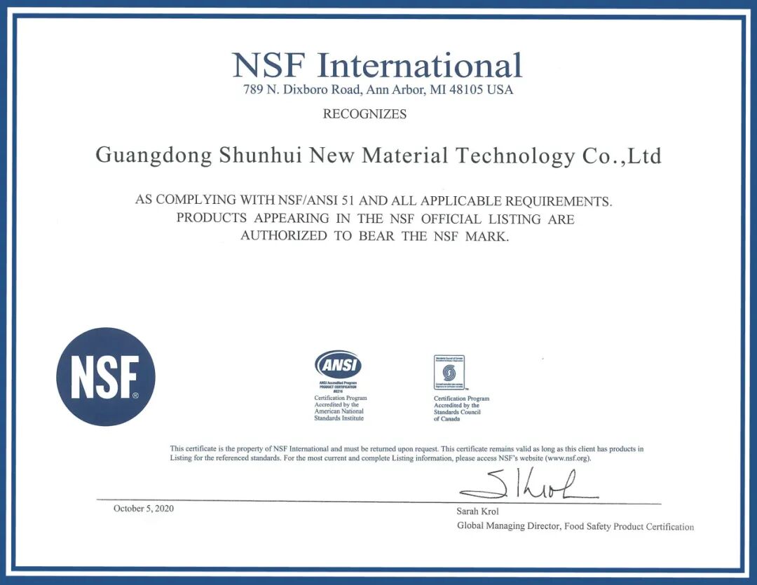 在短短几年的发展时间里,顺辉天成岩板相继通过了高新技术企业、专精特新中小企业、NSF食品级认证、UL绿色卫士金级认证、GQM能量管理体系认证、SGS检测认证等,为产品研发与生产提供了坚实的保障,同时也提升了顺辉天成岩板在市场的竞争力。