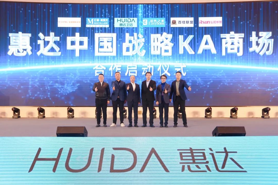 惠达卫浴作为卫浴行业领军品牌,持续开拓居然之家、红星美凯龙等KA卖场渠道,加速进驻,进一步夯实行业头部领军品牌地位。同时,为达成“千商万店”战略目标,惠达卫浴坚持与各大KA商场积极联动,强化合作。本次大会还邀请到居然之家新零售集团股份有限公司招商运营总监苏文隆,红星美凯龙江苏省营发二中心常务副总经理李治,金盛董事局常委副总裁包建国,百佳联盟理事长、南通百安谊家总裁胡小锋,弘阳家居江北店副总经理陆培等KA领导进行现场分享,并与惠达卫浴执行总裁张春玉举行了“惠达中国战略KA商场合作启动仪式”。