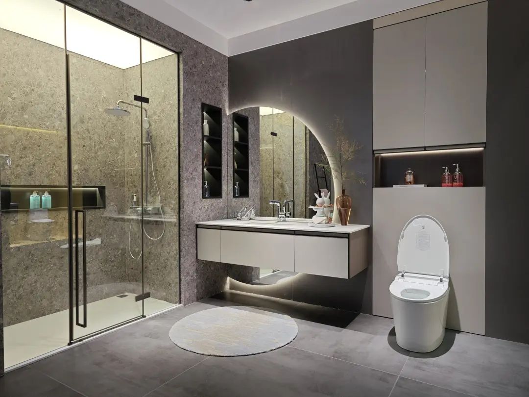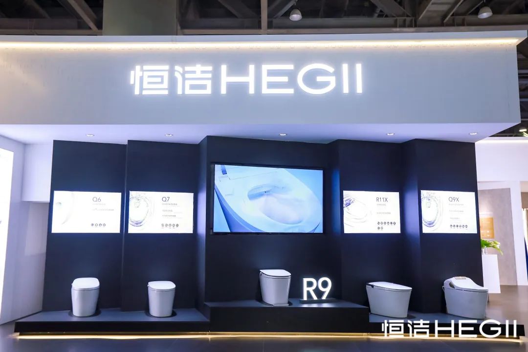恒洁以“品质点亮生活”为主题参展,其中,搭载100多项专利技术的超凡R9智能马桶惊艳亮相。这款产品搭载多个“行业首创”技术,包括恒流技术、单孔最多水型组合切换技术、AI智导巡航清洗技术、OTA平台技术、隐形智慧翼便捷操控面板、“净界”全链路恒净除菌3.0系统等,吸引了众多目光,成为全场焦点。此外,恒洁还展出了栖霞藏秋定制套间、秦淮月照定制套间、月泊系列、徽韵系列、云山系列等多个卫浴套间和套系产品。