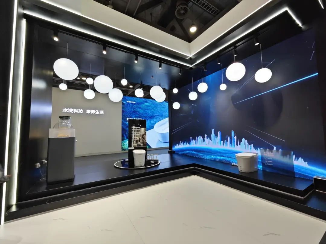 参展主题是“臻于原创,高定之美”,展厅布局以套间为主,每个套间描绘着不同的方式方式。展品包括了阿西娜系列、玄狐系列、迷音系列等, 同时也展出了多款智能马桶产品。