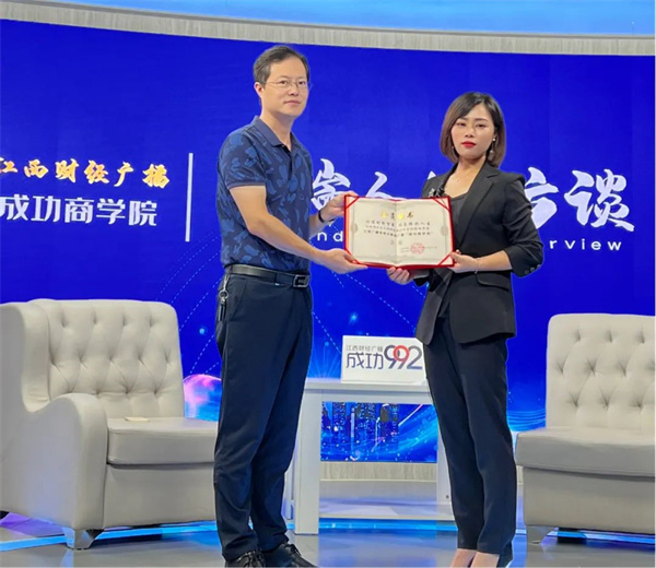 节目最后,江西财经广播副总监李程为杨秀蓉颁发了《成功商学院》会员证书。