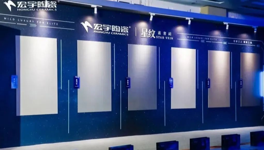 宏宇陶瓷2023旗舰新品星纹素奢砖主要有灰调和棕调两大主色调,光泽度共涵盖了23°星耀灰、56°星河灰、75°星际灰、23°星云纱、65°星漫咖和82°星岩棕6款,主要的规格有900×1800㎜、750×1500㎜。