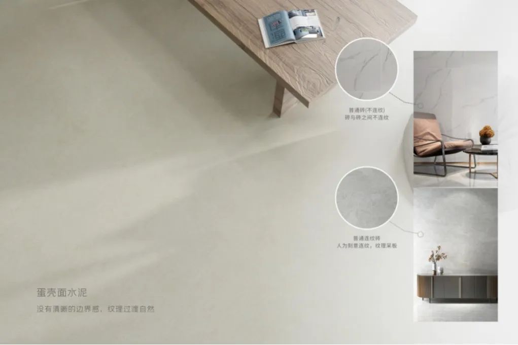 欧神诺独创的蛋蛋壳面肌理是除毛刺面、颗粒面、细沙面、肤感面、亮光面以外的第6种质感肌理。蛋壳面水泥系列共包含米黄、银灰、霜灰等多种颜色,以及800×2600㎜、900×1800㎜两种主流规格。