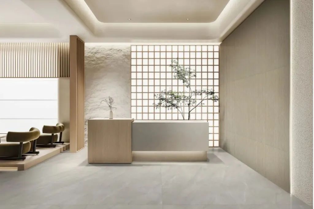 据了解,微光石系列采用了新型超细滑釉料技术,具有细腻平顺的触感;又以数码刷抛和精雕工艺,打造出了自然护眼微光感;同时还采用了纳米高分子防污材料,表面防污性能实现全面升级;加上以微水泥为蓝本的设计灵感,整体版面内敛且低调。