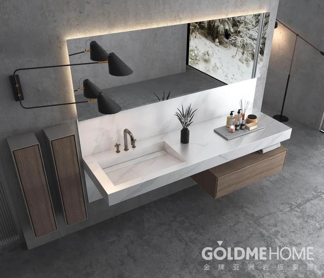 金牌亚洲从国外引进进口设备,建成岩板深加工线,以无缝拼接、弧线切割等精湛加工工业,将岩板规范应用于家居各个领域,大范围地拓宽了岩板的应用空间,凭借领先的技术和研发实力以及细致服务,中国建筑卫生陶瓷行业岩板应用研究中心落户金牌亚洲。